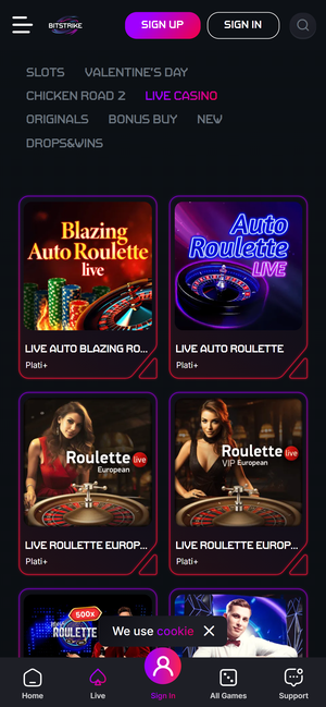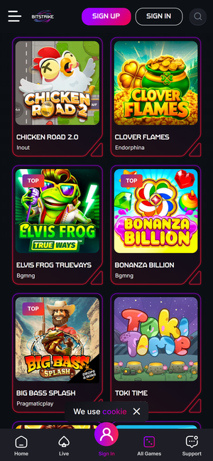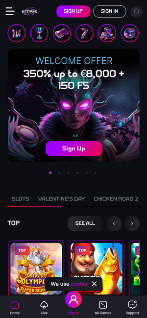 Bitstrike offers a large casino portfolio with 4,500+ games, covering slots, live casino, jackpots, bonus-buy titles, and instant win formats. The lobby is clearly slot-centric, but live casino is also present with classic tables and game-show style titles. Navigation by providers and game categories is available, which helps filter the large library efficiently. Overall, the focus is on modern crypto-friendly slot content rather than niche table variants.