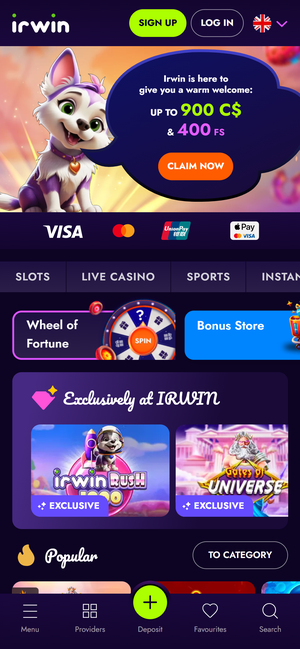 IRWIN Casino is a relatively new platform (launched in 2024) operated by Galaktika N.V. under a Curaçao license. It’s positioned as a high-volume casino with a strong focus on variety, fast payments, and crypto support.
