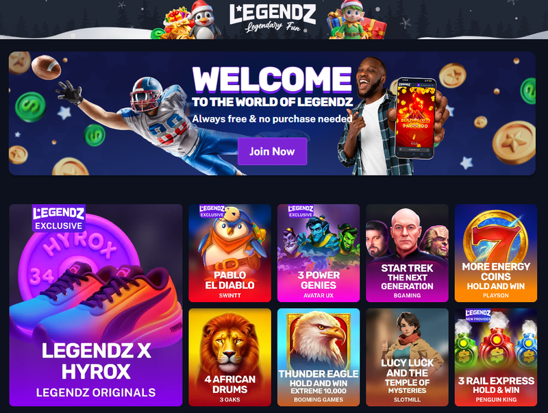 Legendz Casino is a modern sweepstakes-style social casino where players use virtual currencies instead of placing traditional real-money wagers. The platform focuses on slots, table games, live games, and a built-in social sportsbook. It launched recently and is positioned as one of the more advanced newcomers in the sweepstakes segment.