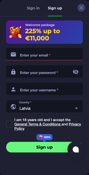 Min deposit €25, wager x25 (bonus+deposit), 30 days