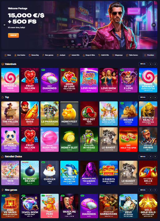 From a structural point of view, RetroBet is built as a full-scale casino rather than a niche product. The platform offers a broad mix of content, covering slots, table games, live casino titles, game shows, crash games, video poker, bingo, keno, and esports. The total slot library exceeds 2,500 titles, which places RetroBet comfortably in the mid-to-large casino category.