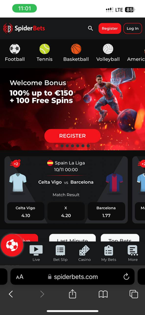Restricted:  SpiderBets is restricted in your country, please try these instead: