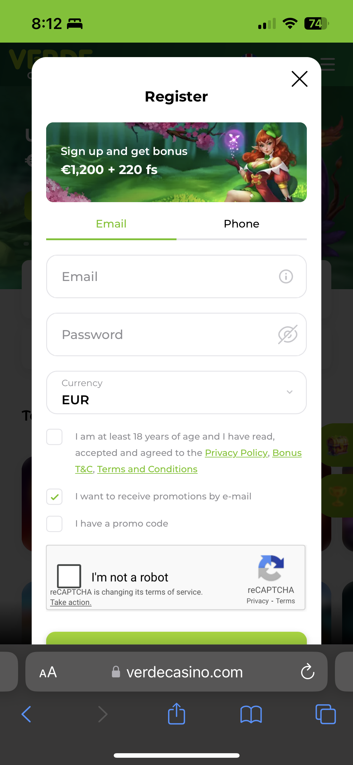 Restricted:  Verde Casino is restricted in your country, please try these instead: