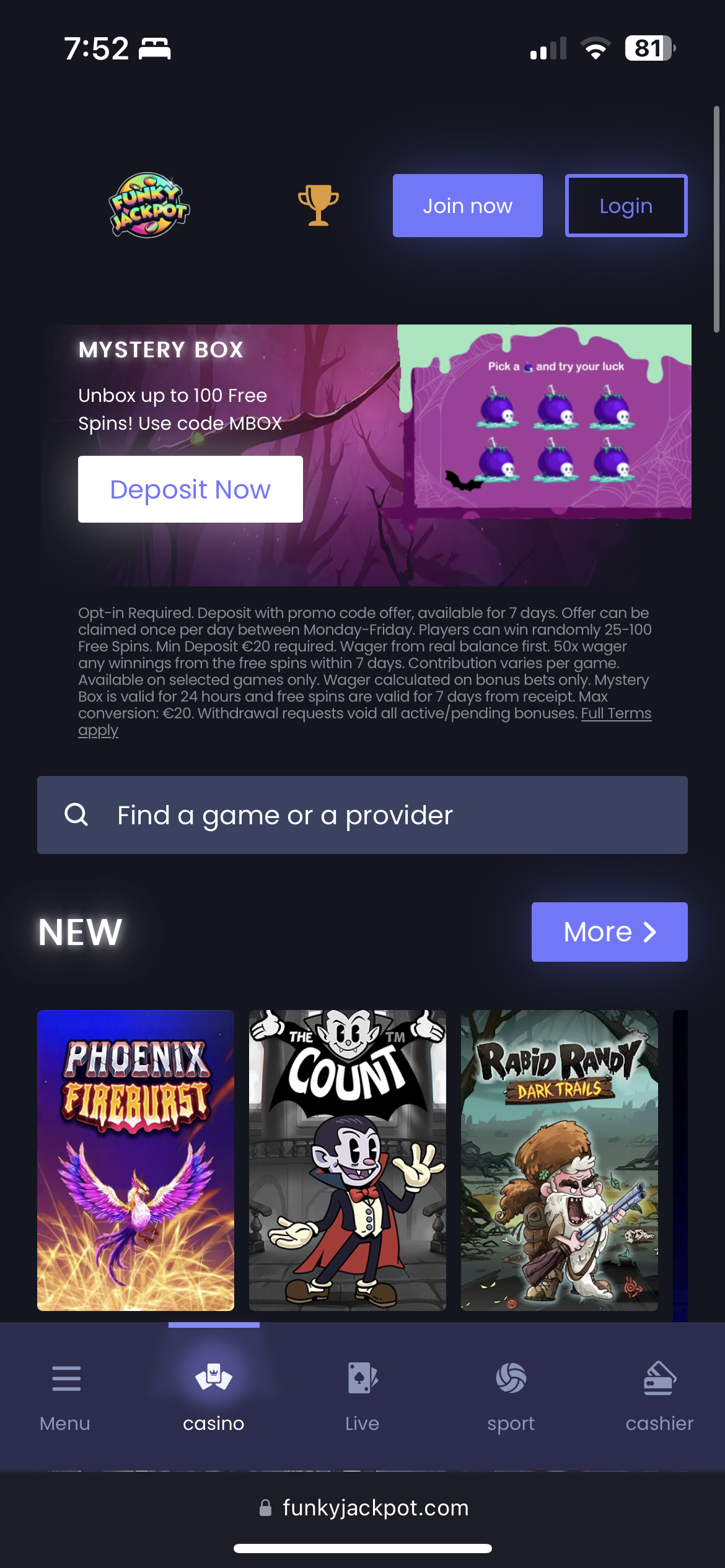 • Funky Jackpot enhances the gaming experience with not just a generous welcome bonus, but also a variety of exciting promotions and seasonal offers to keep the fun going all year round