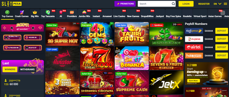 Slotpesa is a regionalized online casino site that will target the Tanzanian players. The library in it has high volume of modern video slots, live casino table games, poker and virtual games. It is the official licensed website controlled by Gaming Board of Tanzania and enables players to enjoy and control their favorite games regardless of the location as it is convenient in the form of mobile application or mobile site. The payment methods are mobile money wallets such as tigo pesa, airtel money, M-pesa, and halopesa that are favorable among most Tanzanian gamers.